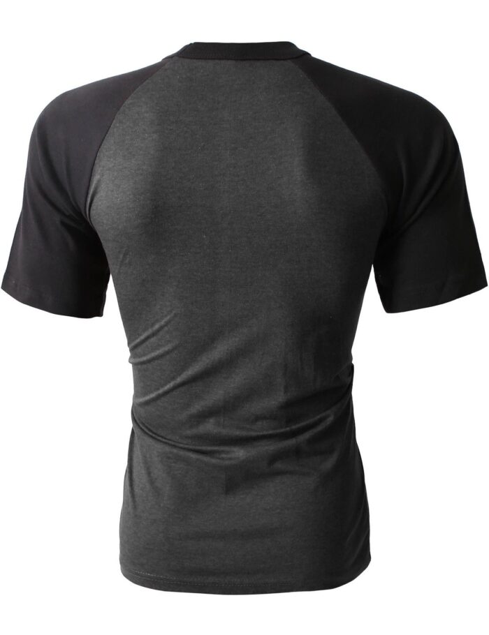 - Get geared up for the summer and the beach with our short sleeve raglan tee with contrasting colors.