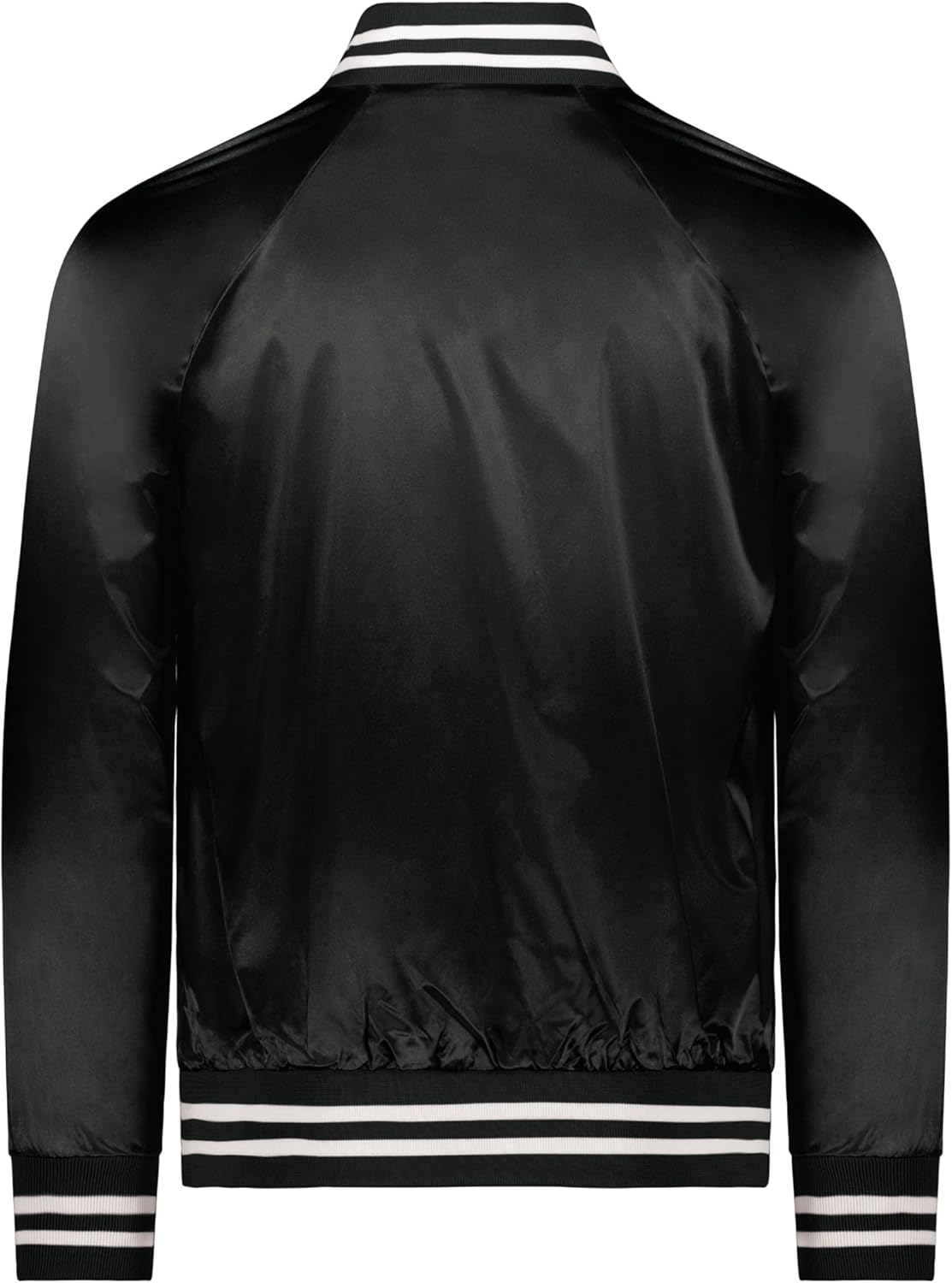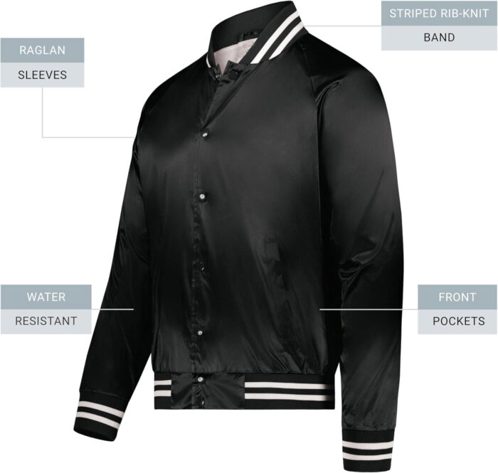 - Design: Ribbed cuffs, collar, and hem for a classic varsity look