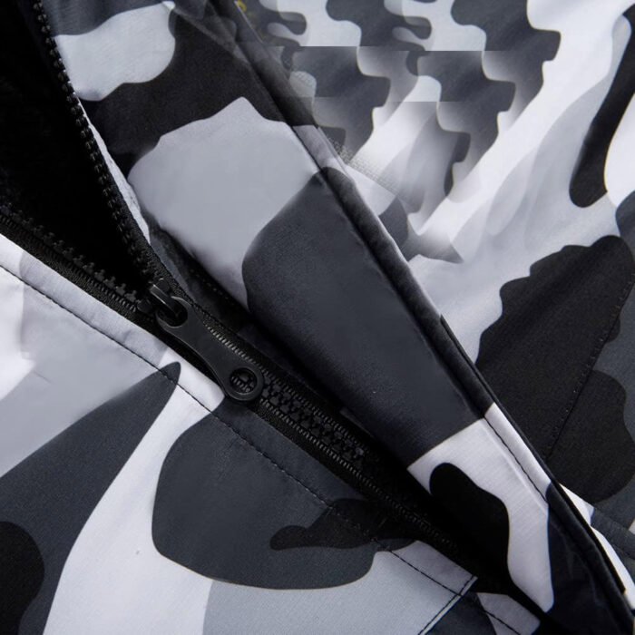 Featuring a bold camouflage design, this jacket can be fully customized with logos, brand colors, and unique patterns. The thermal insulation provides warmth in freezing temperatures, while ventilation zippers allow airflow and moisture control for all-day comfort. The adjustable hood, reinforced cuffs, and built-in snow skirt prevent snow and wind from getting inside, keeping you dry and warm in extreme conditions. With our low MOQ, businesses and teams can place small or bulk orders, ensuring fast production and worldwide shipping.
