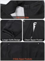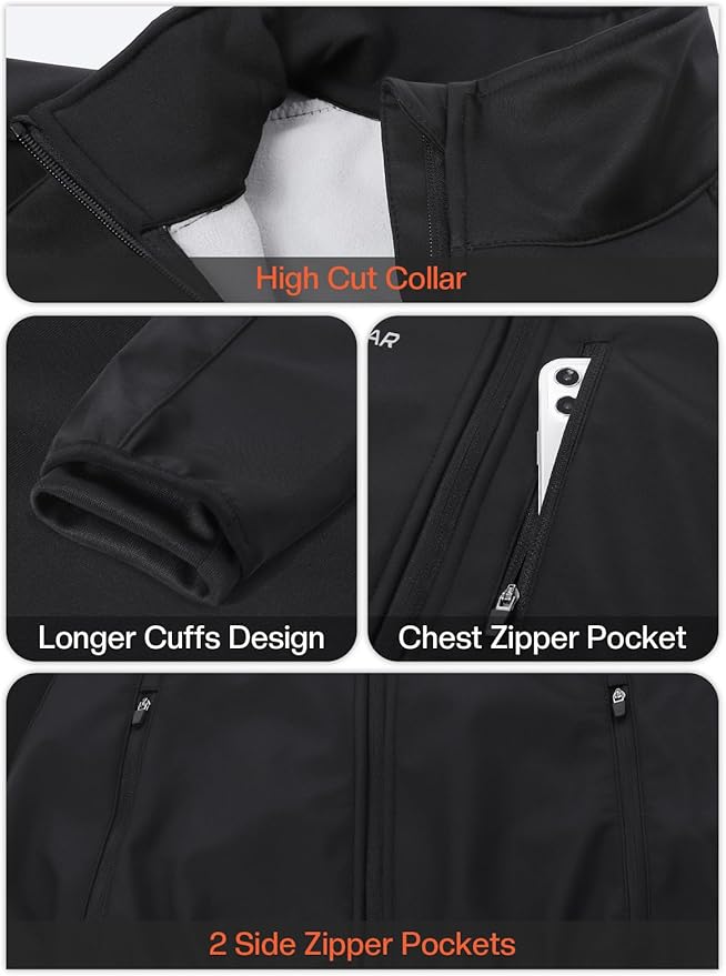- Features: Full front zipper, elastic cuffs, and back pockets for storage