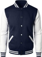 - Design: Ribbed cuffs, collar, and hem for a classic varsity look