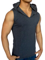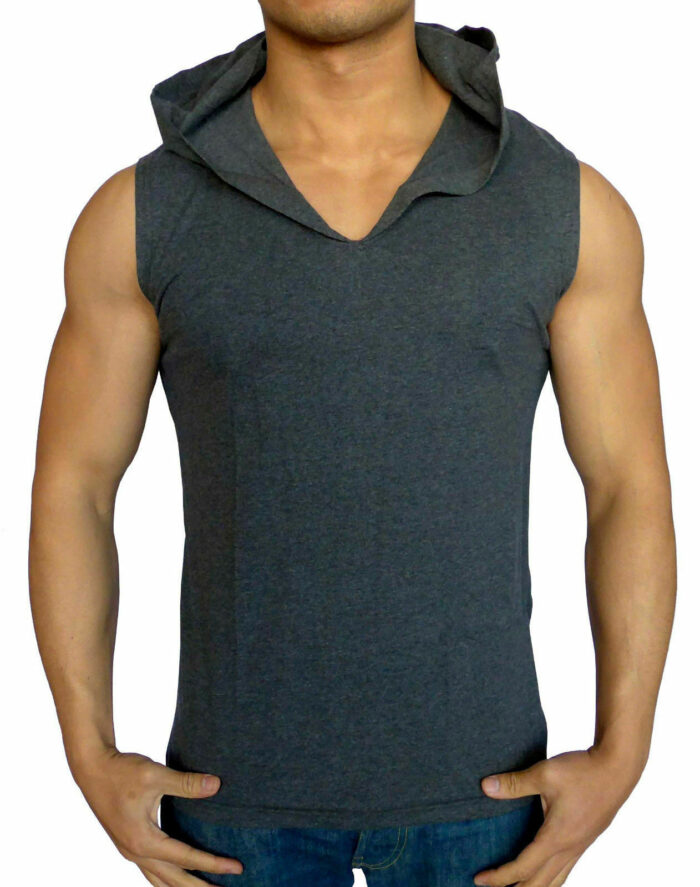 MENS HOODED SLEEVELESS TANK TOP HOOD MUSCLE BODYBUILDING GYM CHARCOAL